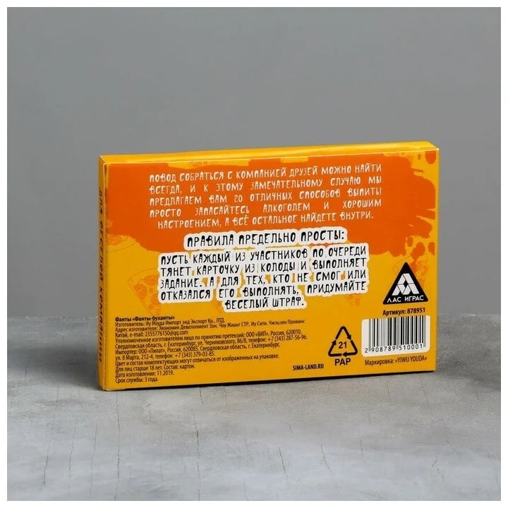 Купить игра для компании "фанты буханты" 20 карт от 100 руб. с доставкой до пункта выдачи в Темникове. Интернет магазин ДекаМаркет. Оплата при получении.